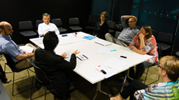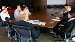 在「心肌」組進行討論的iCeMS研究企劃部門負責人淺田孝特任教授(前方右側)等人 |