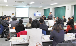 會談後,在地球環境學堂暨學舍舉辦了由相關教師及學生所參加的專題討論會。首先由藤井滋穗地球環境學堂負責人就共同研究、學生交流、實習進行說明,並介紹學生們從事的活動。隨後,大家就今後與順化市在研究教育方面的合作交換了意見。