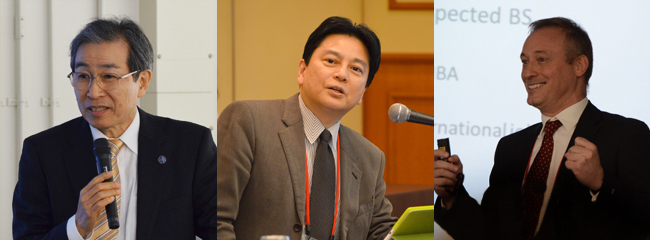 左起分別為吉川理事兼副校長、德賀研究部長、里斯本諾瓦商學院(葡萄牙)的Matos副校長 |
