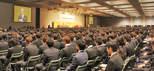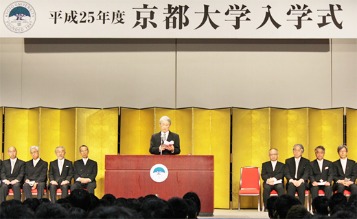2013學年度大學新生入學典禮在京都市勸業館「Miyako messe」舉行,典禮上,齊唱校歌後,松本紘校長致辭。