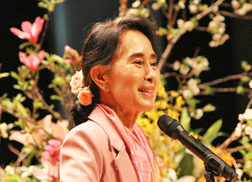 蘇姬主席除了在1991年因為「爭取民主人權的非暴力鬥爭」獲頒諾貝爾和平獎外,並獲美國國會頒給金質獎章(2008)等,目前在成立於2011年的現政權下,以下議院人民院議員的身分,為與政權的和解與民主化努力著。