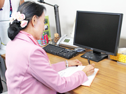 在讓造訪蘇姬廳的人簽名留念的簽名冊最後一頁寫下「深表感謝與榮耀 翁山蘇姬 15.4.2013」並簽名的蘇姬主席 |