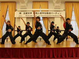 例行的迎新節目是本校舞蹈隊「彩京前線」所表演的迎新舞蹈「京炎!相逢自是有緣」。學生舞者們身穿改良式具現代感的和服,表演震撼力十足的舞蹈,將宴會氣氛推向高潮。