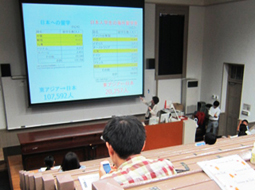 首先,由國際交流中心的老師們介紹亞洲各國與本校簽訂學生交流協定可供交換留學的學校,以及主要利用長假參加的東亞超短期留學課程(夏季班/春季班),並演講介紹留學亞洲的魅力與優點。接著,由曾到新加坡國立大學、北京大學交換留學的學長姐介紹留學地的學習環境與不同文化之間的交流情形等,提供了留學亞洲以及英語學習的相關建議。最後,國際留學中心的教師說了一番鼓勵大家的話。參加者們似乎已各自在規劃留學之路。