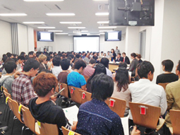 在吉田國際會館第5、6教室舉辦了R/Lead International Project的公開論壇,本事業的參加者有100名,18位主持人透過每個禮拜的讀書會就各類話題反覆進行討論。本次論壇獲得日本英語交流聯盟的協助,邀請到活躍於英國的5位優秀辯士進行議會式辯論。