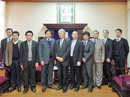 本校一行人首先在校長接待室受到河內百科大學Nguyen Trong Giang校長的迎接,除了Giang校長外,河內百科大學的Nguyen Canh Ruong副校長、Huynh Trung Hai環境理工學部系主任、Mai Thanh Tung國際合作部副部長等人也列席其中。兩大學的校長分別介紹了教育、研究以及產學合作的現況與計畫,並就今後的合作進行了懇談。