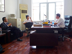 국가유학기금 관리위원회에서의 의견교환 모습. 왼쪽 앞에서부터 수기우라 교수, 다무라 교수, 한리유특정조교수, 오른쪽 앞에서부터 웨이리 기획발전부(프로그램의 기획담당부서)부주임, 양신유 부비서장, 양광 아프로유라시아 사무부(파견・협정사무담당)부주임 |