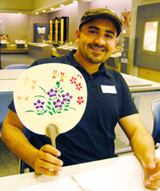 완성한 부채를 기뻐하면서 보여주는 참가자 |