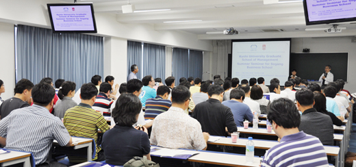 경영관리대학원은 한국•서강대학원 비즈니스 스쿨 교원 및 MBA 수료생(합계66명)을 대상으로 서머 세미나를 개최했습니다. 테마는 한국측의 리퀘스트인 「일본 경영」이었으며, 고바야시 기요시 경영관리대학원장이 「Strategic Complementarity and System Competition: Turning Points of the Japanese Business Models」라는 제목으로 기조강의를 했습니다. 또, 하라 요시노리 교수, 이시하라 가쓰지 특별교수, 우스이 마코토 특별교수가 이노베이션•매니지먼트, 공민연계(PPP), 서비스•이노베이션의 각 테마에 관해서 자신의 실무경험을 근거로 한 강의를 했습니다.