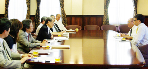 우선, 마쓰모토 총장이 이번의 특별강연회에 있어서의 강연 및 본 대학을 방문한 것에 감사의 뜻을 표하고 곤도 실장이 강연회의 초대 등에 대해서 사사를 말했습니다. 계속해서 아시아 지역의 개발에 있어서의 일본의 역할, 또 일본을 대표하는 고등교육기관으로서의 본 대학의 역할 등에 대해서 의견을 교환했습니다.