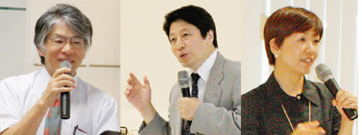 왼쪽에서 나와타 교수, 후시키 교수, 야마자키 조교수 |