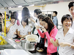◆2010년8월20일 타이•가세사토 대학에서 「다시(우려낸 국물) 이벤트」를 개최했습니다. 농학 연구과 식(食)의 미래전략강좌(아지노모도 기부 강좌), 농학 연구과, 동남 아시아 연구소, 국제교류추진기구의 공동주최로 타이의 가세사토 대학(방콕시)에서 「다시(우려낸 국물) 이벤트」를 개최했습니다. 작년에 이어서 2회째가 되는 본 이벤트에서는 본 대학의 「식(食)」에 관한 최선단의 연구를 소개하는 동시에 일본 요리의 근간인 「다시(우려낸 국물)」를, 특히 「식(食)」이나 「일본 문화」를 연구 테마로 삼고 있는 현지대학생들이 그 다시(우려낸 국물)의 맛을 보았습니다. 아시아에는 다시국물의 좋은 맛을 잘 이용한 요리가 많이 있습니다. 일본 요리와 타이 요리는 완전히 다른 장르의 요리로 보이지만, 생선의 다시국물의 좋은 맛을 살린 요리가 있다는 공통점이 있습니다. 이 이벤트는 일본 요리에 다용되는 다시국물의 좋은 맛을 공유하고 자기 나라의 전통적인 식(食)문화의 이어지는 의의에 대해서 의견을 교환하는 것을 목적으로 했습니다. 가세사토 대학에서는 농학•가정학•일본어학과의 학생이나 교원, 전원 약 70명이 참가했습니다. 나와타 에이지 농학 연구과 교수가 본 이벤트의 취지를 설명한 후에 후시키 도루 교수가 Importance of traditional UMAMI taste for Asian” (아시아인에 있어서 전통적인 좋은 맛의 중요성)이란 제목으로 다시국물의 좋은 맛의 과학적 분석에 관한 강연을 하고, 야마자키 하나에 조교수가 ”Anintroductory guide to traditional Japanese cuisine” (전통적 일본 요리의 소개)란 제목으로 강연했습니다. 이에 따라 교토의 유명요리점(잇시소덴 나카무라, 기노부, 지키신보 사이키)의 요리사 3명이 실연했습니다. 참가자는 3개의 그룹으로 나누어 가다랭이와 다시마를 많이 사용해서 다시국물을 만드는 방법을 견학하고 현지의 식품재료로 마무리한「국물」과 현지에서 만든 「우나기보즈시(뱀장어말이 스시)」를 시식했습니다. 톰얌쿵 등 스파이스 맛의 달고 맵고 시큼한 맛에 익숙해져 있는 타이인들이지만, 일본 요리의 섬세한 다시의 맛에 감동한 감상도 많아 대단히 성대한 이벤트가 되었습니다.