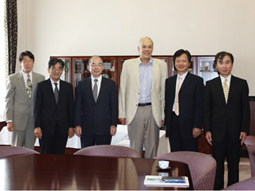 오른쪽에서 이시이 교수, 나카무라 정보학 연구과장, 잣쿠맨 박사, 시오타 이사•부학장, 미츠야마 의학 연구과장, 도쿠라 데루오 국제부장 |