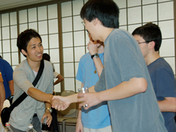 ◆2010년9월2일•3일 본 대학에서 청강생이 KCJS 2010 가을 학기의 오리엔테이션에 참가했습니다. KCJS 영어강의청강제도는 본 대학에서 매학기 1강의에 대해서 2명정도 전체 10명정도가 미국 대학생들과 함께 KCJS가 제공하는 영어강의를 청강할 수 있는 제도입니다. 강의는 물론 강의외의 교류를 통해서 청강생들은 영어력과 지식을 향상시키고 미국 대학생들과 우호를 깊게 하면서 견문을 넓히고 있습니다. 9월2일에는 아카데믹 오리엔테이션을, 9월3일에는 간친회를 실시하여 본 대학에서 청강생들이 참가했습니다. 이번 학기는 6명의 본 대학학생들이 청강생으로서 강의에 참가하고 있습니다. 아카데믹 오리엔테이션에서는 청강생들이 KCJS 학생들에게 소개되어 한사람씩 영어로 간단한 자기소개를 했습니다. 계속해서 강의를 담당하는 선생들이 강의내용을 설명했으며, 학생들은 열심히 귀를 기울이고 있었습니다. 간친회에서는 건배한 다음 일미학생들이 자연스럽게 교류하고 있었습니다.