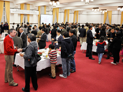 ◆2010년12월9일 총장주최 「외국인연구자와 교환회」를 개최했습니다. 100주년시계탑기념관에서 총장주최 「외국인연구자와 교환회」를 개최했습니다. 이것은 연말의 국제교류항례 이벤트로서 2000년부터 계속해서 개최하고 있으며 교토대학에서 교육•연구에 종사하고 있는 외국인연구자와 총장, 이사•부학장 및 부국장 등을 비롯해 외국인연구자와 관계가 있는 본 대학의 교직원과 교류를 깊게 하는 것이 목적입니다. 이번의 참가자는 외국인연구자•일본인교원 등을 합해서 약 300명이며 연구과•연구소•센터 등을 합쳐서 30이상의 부국에서 참가했습니다. 교환회는 모리 준이치 국제교류추진기구장의 사회•진행으로 시작했습니다. 참가자끼리 환담한 후에 마쯔모토 히로시 총장이 개회의 인사를 하고 금년의 교토대학의 연구나 국제교류에 관한 중요사항을 사진으로 소개하는 동시에 가족적인 분위기의 환영 스피치로 회장은 화기애애한 분위기가 가득했습니다. 이어서 오니시 유조 이사•부학장이 건배를 리드한 후에 외국인연구자와 인수교원이 함께 서로의 연구내용 등을 테마로 간담회는 성황리에 이루어졌으며, 평소에는 접할 기회가 없는 다른 분야의 연구자끼리도 하나의 공간에서 친교를 깊게 하는 장면이 보여졌습니다. 또 올해는 가족과 함께 참가한 외국인 연구자가 많았으며 일본 체류중의 가족끼리도 교류하는 기회가 되었습니다. 식사 메뉴로서는 이슬람권의 사람들을 배려한 할랄 메뉴 등이 마련되어 한층 환담이 무르익어 갔습니다. 마지막에는 모리 기구장의 인사로 마무리하고, 파티의 여운을 남기면서 약 2시간의 교환회는 폐회했습니다.