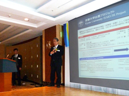 이어서 마쓰모토 총장님이 ‘교토대학의 국제전략, 협조와 경쟁에 대하여’라는 주제의 기념강연이 있었으며 교육과 연구 뿐만 아니라 동창회의 국제화에 대해 한국과의 교류를 예로들면서 현재 교토대학의 활동에 대해 소개하였습니다.