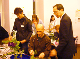 사가고류의 하세가와 메이슈 선생님의 지도를 받았습니다. 먼저 이케바나에 대한 기본적인 설명을 들은 후에 실전에 임했습니다. 꽃을 꽂는 동안 참가자들의 표정은 진지함 그 자체였습니다. 참가자들은 하세가와 선생님의 지도를 받아 백합과 마가렛 등의 다양한 꽃 재료를 활용하여 개성 넘치는 작품을 완성할 수 있었습니다. 마지막으로 완성된 작품들을 모두 함께 감상하였습니다.