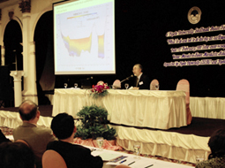 교토대학 동남아시아포럼은 세계적인 평가를 얻고 있는 교토대학의 학술성과의 일단을 동남아 사회에 환원할 것을 목적으로 2007년도부터 인도네시아와 태국에서 매년 한 번씩 개최되는 포럼입니다. 이번 포럼은 태국인 동창생들의 요청으로 ‘지진메커니즘과 방재’가 주제로 설정되었습니다. 당일에는 약 100명의 태국인 일반 참가자들이 모였으며, 먼저 KUC의 Sucharit Koontanakulvong 회장의 개최인사와 시오다 고헤이 이사 겸 부학장의 개회축사가 진행되었습니다. 이어서 오이케 가즈오 전 총장(현 국제고등연구소장)이 지진메커니즘에 관한 오랜 연구성과에 대해 알기쉽게 강연해 주셨습니다. 오찬 후에는 태국 연구자들의 강연과 패널토론이 이루어졌으며 마지막으로 시미즈 히로무 동남아시아 연구소장의 폐회사로 마감되었습니다.