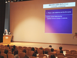 우선 개최측을 대표하여 다나카 쓰네미 고등교육 연구개발 추진센터장과 자아의식연구회를 대표하여 가지타 에이치 환태평양대학 학장이 각각 개회사를 진행하였습니다. 이어서 제임스 꼬떼(James Côté) 웨스턴 온타리오 대학교수가 ‘후기 근대의 정체성 자본–소프트 스킬과 교육에서 직장으로의 이행’이란 주제로 강연하였습니다.