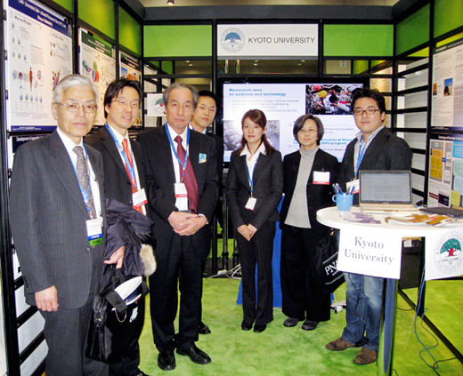 이번 이벤트는 독립행정법인 과학기술진흥기구(JST)의 지원으로 일본 파빌리온을 설치하게 되었는데 교토대학을 비롯하여 미국 히타치사, JR 도카이, 게이오기주쿠 대학, 리쓰메이칸 대학, 도쿄대학, 이화학연구소, 일본 원자력연구 개발기구, 일본학술진흥회, 해양연구개발기구, JST 등 일본국내 11개 기관이 공동으로 전시하였습니다. 교토대학에서는 영상에 의한 프레젠테이션과 패널 전시를 통하여 교원 6명의 연구를 하기에 소개하였습니다. 교토대학의 부스에는 3일 동안 약 170명이 방문하였으며 세계를 선도하는 최첨단 연구에 각국의 연구자를 비롯한 언론 관계자 등이 높은 관심을 보였습니다.
