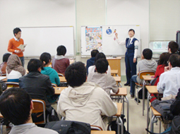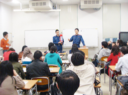 일본대지진(동북지방 태평양앞 바다지진) 후의 강습회였기 때문에 작년도를 크게 웃도는 45명의 유학생이 참가하여 재해시의 대처 등에 대하여 진지하게 귀를 기울이는 모습이었습니다.