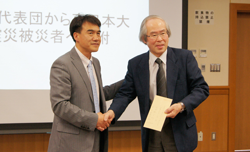 ◆2011년 5월 19일 ‘일중 공동 지속가능한 발전인재 육성 단기연수 프로그램’ 중국대표단으로부터 동일본대지진 이재민에 대한 의연금을 기부받았습니다.