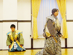 또한 매년 치뤄지는 환영 행사로는 ‘교토대학 노가쿠부(能樂部) 교겐회’의 환영 연기인 ‘교겐(狂言) 시비리(痿痢: 주인의 심부름을 하기 싫은 타로카샤는 다리가 저려서 못 간다고 핑계를 대지만 꾀병을 알아차린 주인이 타로카샤를 꾸짖는 내용)가 공연되었습니다. 전통 기모노 차림의 두명의 학생이 나타나자 유학생들은 무대를 주목하였고 일본의 고전희극인 ‘교겐’을 감상했습니다.