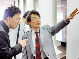 일행은 우선 고모리 사토루 공학연구과장 겸 부이사를 방문했습니다. 동석상에서 이루어진 회담에서는 쌍방이 대학소개와 국제화 상황 등에 관해서 소개했으며 의견을 교환했습니다.