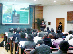 오전에는 난징대학의 홍인싱 공산당서기, 난징농업대학의 저우광홍 학장, 본교의 마쓰모토 히로시 총장의 인사말이 있었습니다. 휴식 시간을 가진 뒤 본교 졸업생인 난징대학의 쟝쥔펑 교수, 난징농업대학의 저우잉헝 교수가 교토대학에서의 유학체험을 강연하였고 그 후 국제교류추진기구로부터 본교의 개요소개 및 장학금과 영어코스에 대한 설명이 있었습니다. 약 100명의 참가 학생들은 모든 강연에 많은 관심을 보이며 집중해 들었습니다.