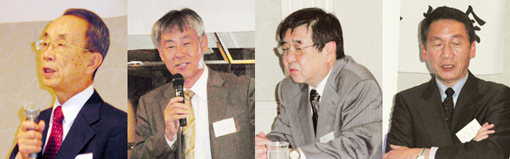 인사말하는 육수일회장, 배훈부회장, 강연하는 아쓰지이사보, 장병항씨(왼쪽부터) |