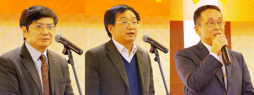 졍챵 부회장, 완졘민 부회장, 와타나베 회장(왼쪽부터) |