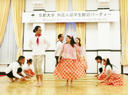 또한 매년 열리는 환영 이벤트 시간에는 본학 댄스팀 '사이쿄젠센'의 '교엔! 소데후레' 연무가 소개되었습니다. 학생 댄서들은 현대풍으로 만든 기모노 의상을 입고 박력 넘치는 춤을 추어 파티의 열기는 후끈 달아올랐습니다.