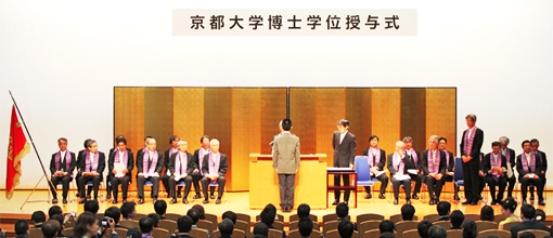 백주년시계탑기념관에서 마쓰모토 히로시 총장, 부학장을 비롯해 각 연구과장 및 학사장, 이사보가 참석한 가운데 박사학위 수여식을 거행했습니다.