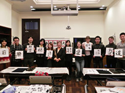 1월 유학생 라운지 '기즈나' 이벤트로 서예가 도리이씨를 초청해 '기즈나 신년 가키조메(붓글씨) 대회'를 개최했습니다. 이번 대회는 2004년부터 '기즈나' 이벤트로서 정착한 것입니다.
