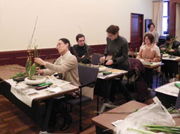 이케바나에 대한 설명을 진지하게 듣고 있는 참가자들의 모습 |