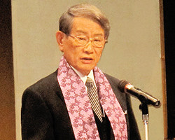 국가의 위기적 재정 상황과 국난이라 할 수 있는 대지진의 피해 속에서 교토대학도 더욱더 노력하여 단지 ‘강한’ ‘현명한’ 대학이 아니라 ‘사회의 변화를 재빨리 인지하고 변화에 유연하게 적응하는 대학’이 되겠습니다. 또한 사회가 기대하는 교토대학의 기능 강화에 한층 매진해 나가겠습니다. 앞으로도 여러분들의 모교에 대한 많은 관심과 아낌없는 지원을 부탁드리는 바입니다. 아울러 앞서 말씀드린 바와 같이 교토대학은 여러분의 인생의 중심축과 같은 존재가 되도록 노력하겠습니다.