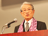 국가의 위기적인 재정상황과 국난이라고 할 수 있는 대지진 후 본학도 개혁해야 할 상황에 직면해 있습니다. 교토대학은 앞으로 가일층 노력을 경주하여 항상 사물의 근원을 주시하며 근원을 규명하는 대학, 기본 즉 근본에 힘쓰는 대학으로서 세계 제일을 추구하겠습니다. 여러분들도 모교를 따뜻한 시선으로 지켜봐 주시고 지원해 주시길 당부드립니다.