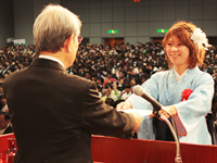마지막으로 여러분이 앞으로도 끊임없이 자신을 되돌아보고 학업을 쌓고 심신을 연마하며 마음을 닦고, 남들의 아픔과 사회의 문제를 민감하게 반응하고 활발한 대화를 소중히 하여 인생을 즐기는 네 가지 힘을 겸비한 인내심 강한 사람으로 활약해 주기를 바라며 학사 학위를 취득한 여러분께 전하는 저의 축사에 갈음하고자 합니다.