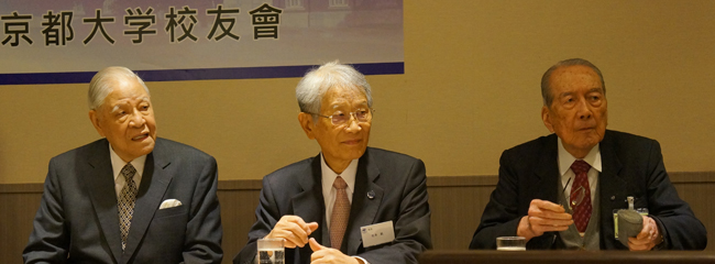 The gathering was organized to coincide with the visit of university President Hiroshi Matsumoto to Taiwan as part of the symposium between Kyoto University and Taiwan University.