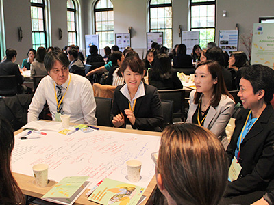 The group discussions and poster session explored three topics: "Employment and promotion systems of administrators responsible for international/global activities and strategies", "Practices of office/team knowledge management for international/global activities and strategies", and "Practices of on-job competency for career advancements of administrators responsible for international activities/strategies". Participants discussed situations at their own institutions, sharing issues and solutions with their fellow administrators.
