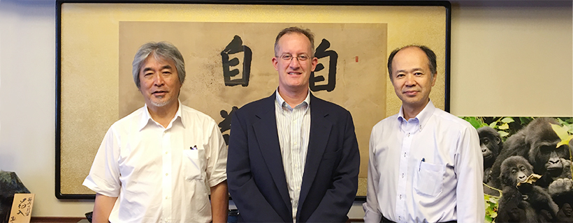 From left: President Juichi Yamagiwa, Director Badenoch, and Mr Junji Yamamoto, vice-director of the International Strategy Office