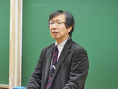 Professor Kashiwara delivering a keynote lecture