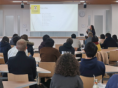 This year's events featured presentations by students from the following universities, discussing their home institutions and countries in English or Japanese: Carnegie Mellon University (USA), the University of Washington (USA), the University of Hamburg (Universitat Hamburg, Germany), the University of Göttingen (Georg-August-Universitat Gottingen, Germany), the University of New South Wales (Australia), the University of Leeds (United Kingdom), the University of Luxembourg, and the University of Iceland. Presentations each day were followed by informal discussion, where attendees enjoyed international networking over lunch.