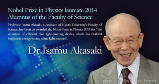 News 发表日期 2014/10/08 Kyoto University alumnus Isamu Akasaki jointly receives the Nobel Prize in Physics 2014 (7 October 2014)