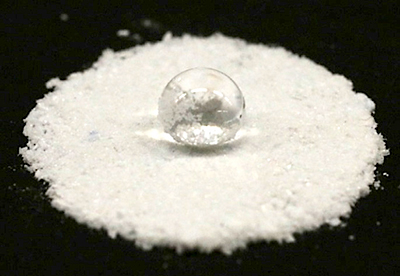 Fig:A bead of water sitting on top of water resistant porous coordination polymer (PCP) crystals.