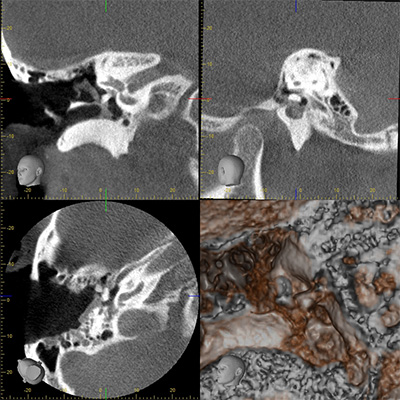 The areas extending from the facial skull through the neck encompass the mouth, pharynx, larynx, ears, temporal bones, nose, and paranasal sinuses. In the treatment of tumors located in these areas, therefore, every care must be taken to preserve the patient's senses of sound, balance, smell, and taste, as well as abilities to breathe, speak, and swallow. This can be a challenging task, especially when the tumor is deep-seated. The portable iCT system enables the surgeon faced with this challenge to determine the exact scope of the tumor, and, with the navigation system, keep track of the actual tissue being worked on, so that removal can be achieved without causing functional impairment. In the case of functional restoration procedures, such as cochlear implantation and tympanoplasty, the system can help the doctor evaluate the precision of the work and estimate the outcome.