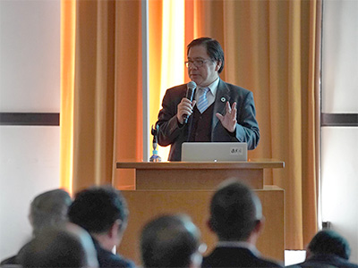 Lecture by GSAIS Program-Specific Professor Tosa (photo courtesy of The Kyoto Shimbun Co Ltd)