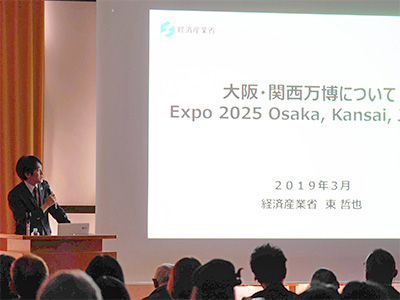 The 15–16 March event opened with greetings from GSAIS Dean Professor Kaoru Takara, and a welcome address from KyotoU President Juichi Yamagiwa. It was followed by two keynote talks: one by virtual reality (VR) pioneer Professor Scott Fisher, associate dean of research at the University of Southern California School of Cinematic Arts and founding chair of the School's Interactive Media Division; and the other by Mr Tetsuya Azuma, director for international exhibitions at the Ministry of Economy, Trade, and Industry (METI), who is in charge of the 2025 Osaka Expo.