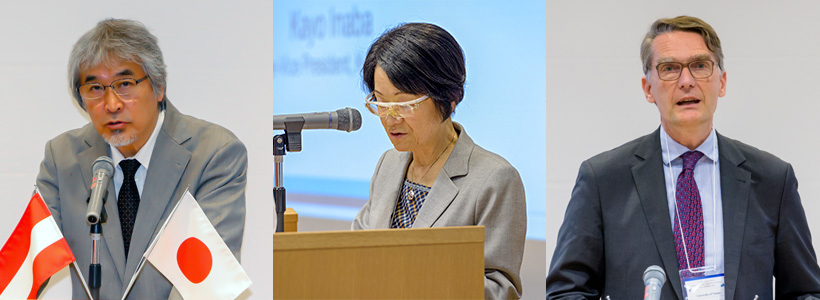 From left: President Yamagiwa closing the workshop, EVP Inaba speaking at the ceremony, and Professor Schütze delivering a keynote lecture